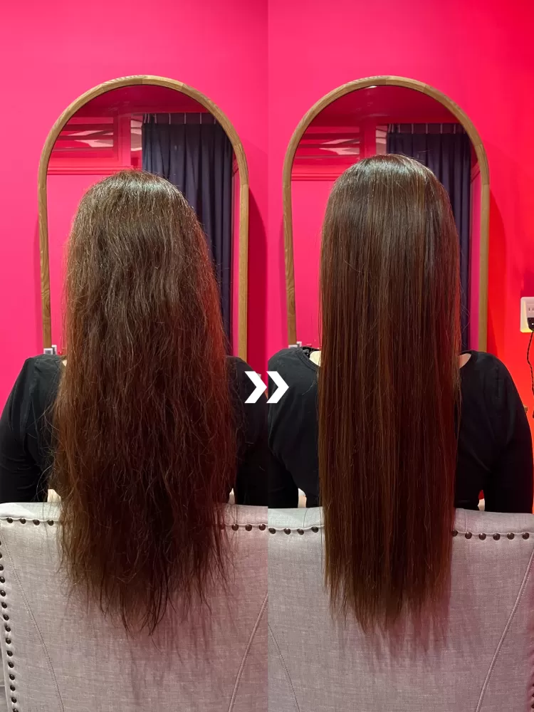💡 Please note: The straight finish is thanks to the optional iron styling. But even without it, the head spa alone improves hair manageability by softening and hydrating the scalp.